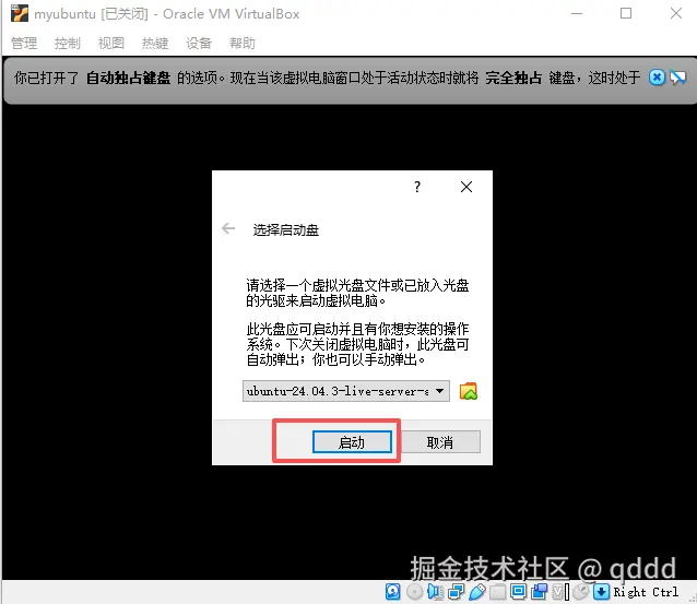 然后点击启动按钮,把ubuntu虚拟机启动起来,输入用户名和密码进行登录