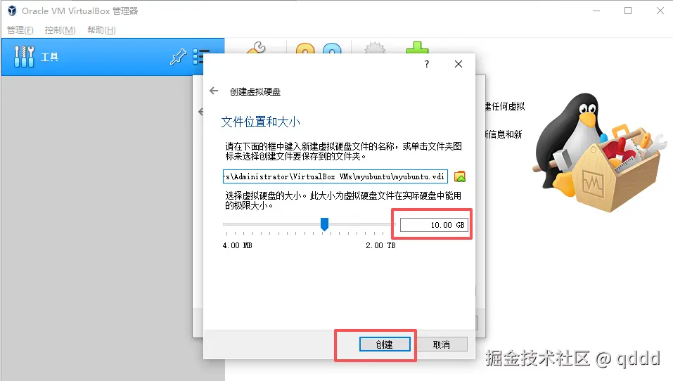 这个磁盘大小,你想调整大一点也可以,不调整也行,然后点击创建
