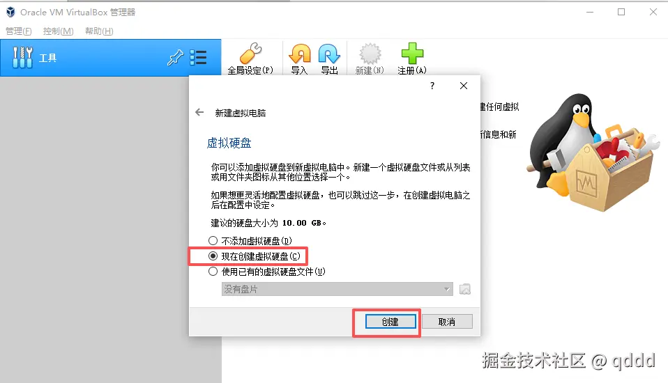 然后创建虚拟硬盘