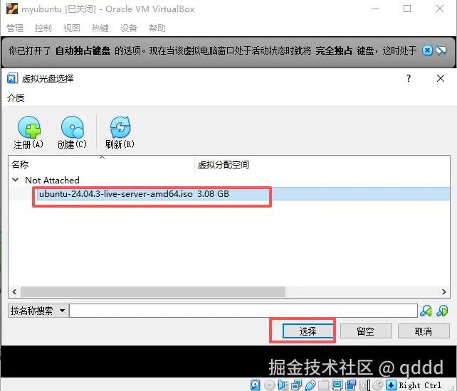 然后在新的弹框中选择你的ubuntu所在位置(这里可以从我们的网盘中下载到,也可以到官网下载),网盘的位置是”虚拟机“文件夹下。