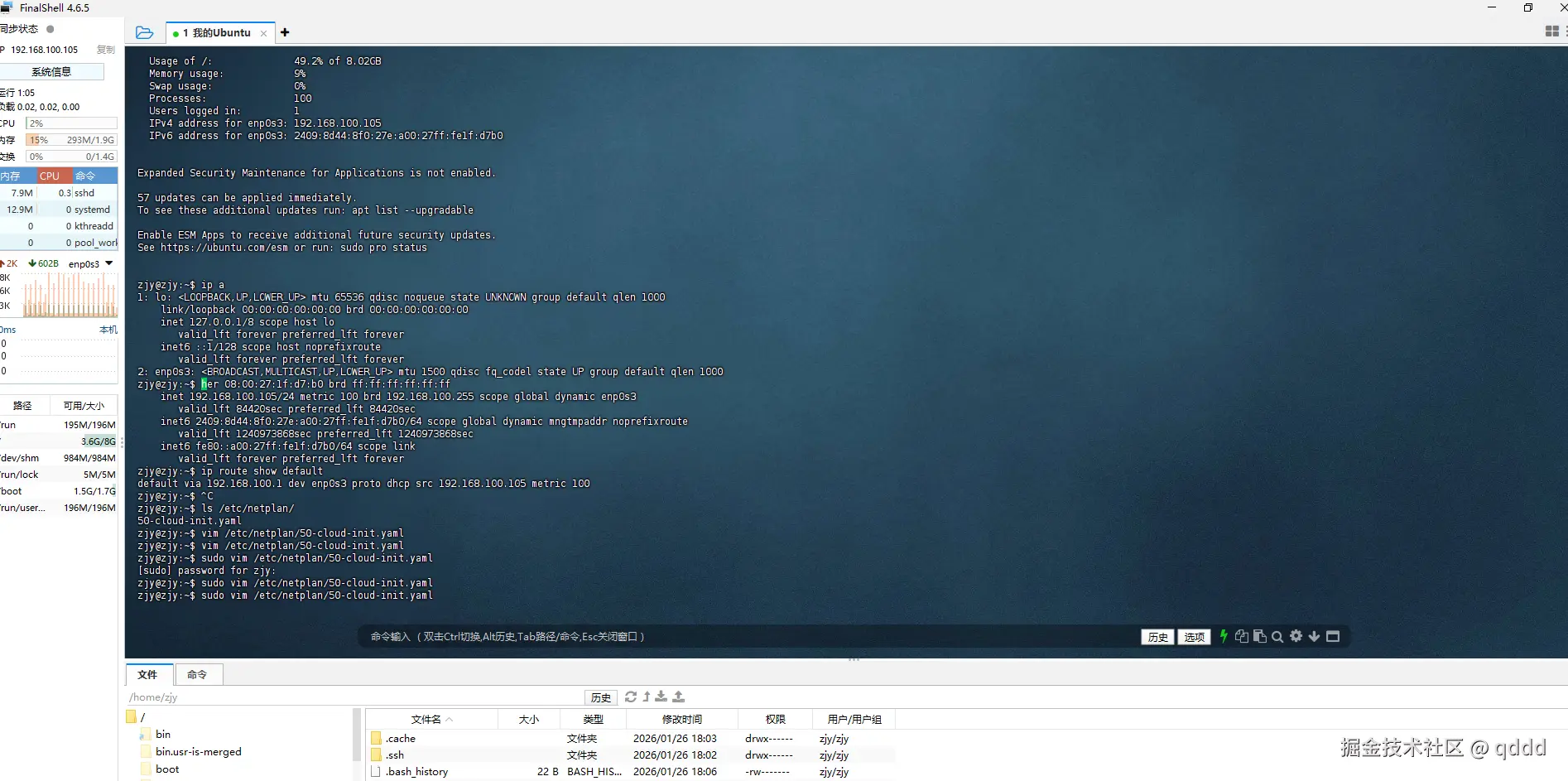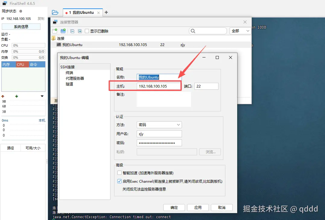 获取到IP后,远程登陆即可,这个ip要记住,后边会用,或者记住获得的方式