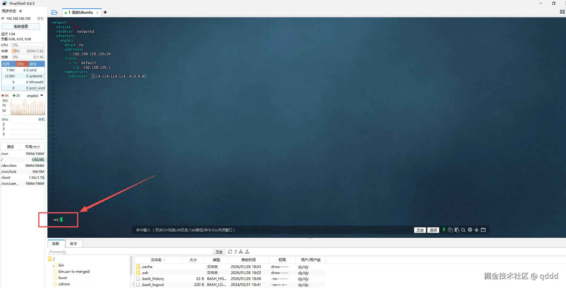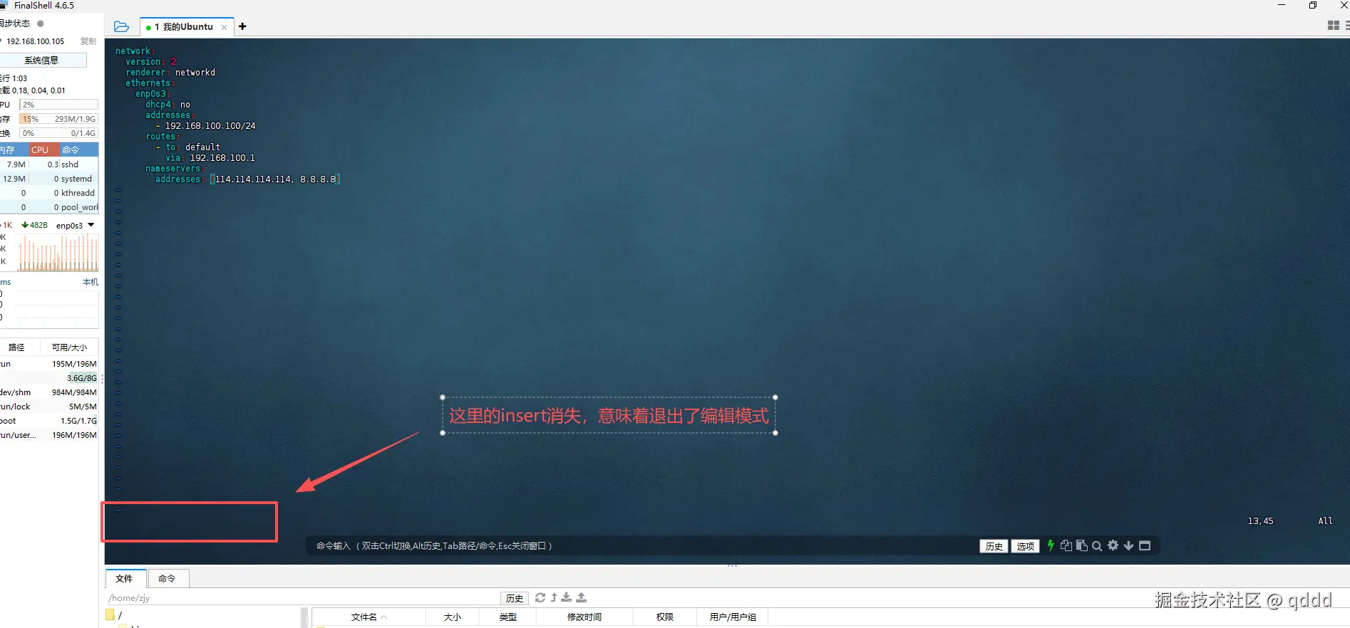 然后,点击esc进入到命令模式,再输入:wq保存退出