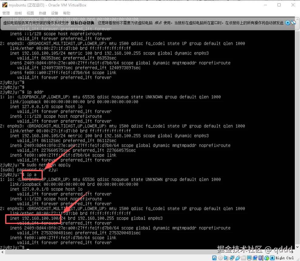 查看ip地址,命令:ip addr