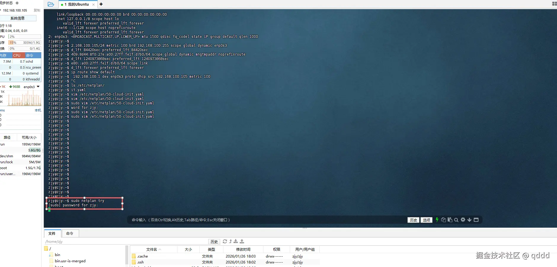 切换到root权限操作:sudo su