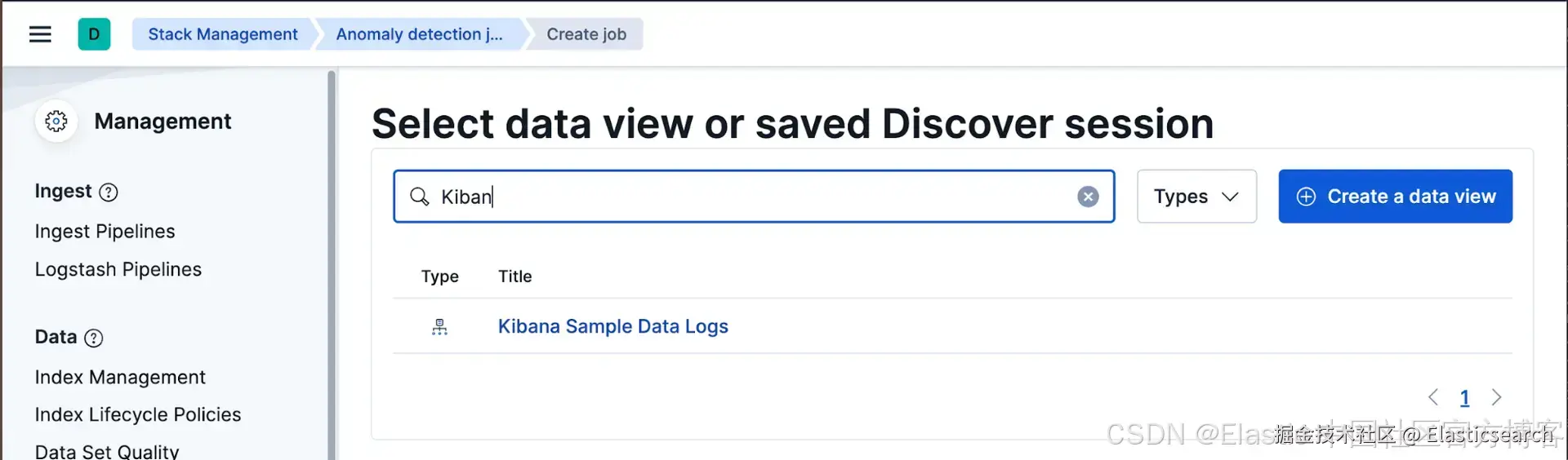 这是实际中创建大多数作业的方式。进入 Machine Learning → Anomaly Detection → Manage Jobs → Create job。
