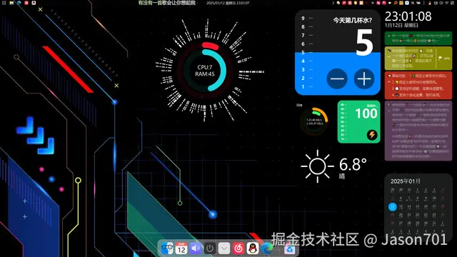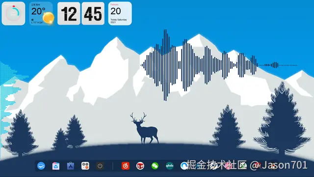 它可以让我们在桌面上放各种小部件,如电脑运行状态、天气、播放音乐等等,想要什么功能自己组合即可。更绝的是,它完美复刻了 Mac 的 Dock 栏交互,既美观又高效。