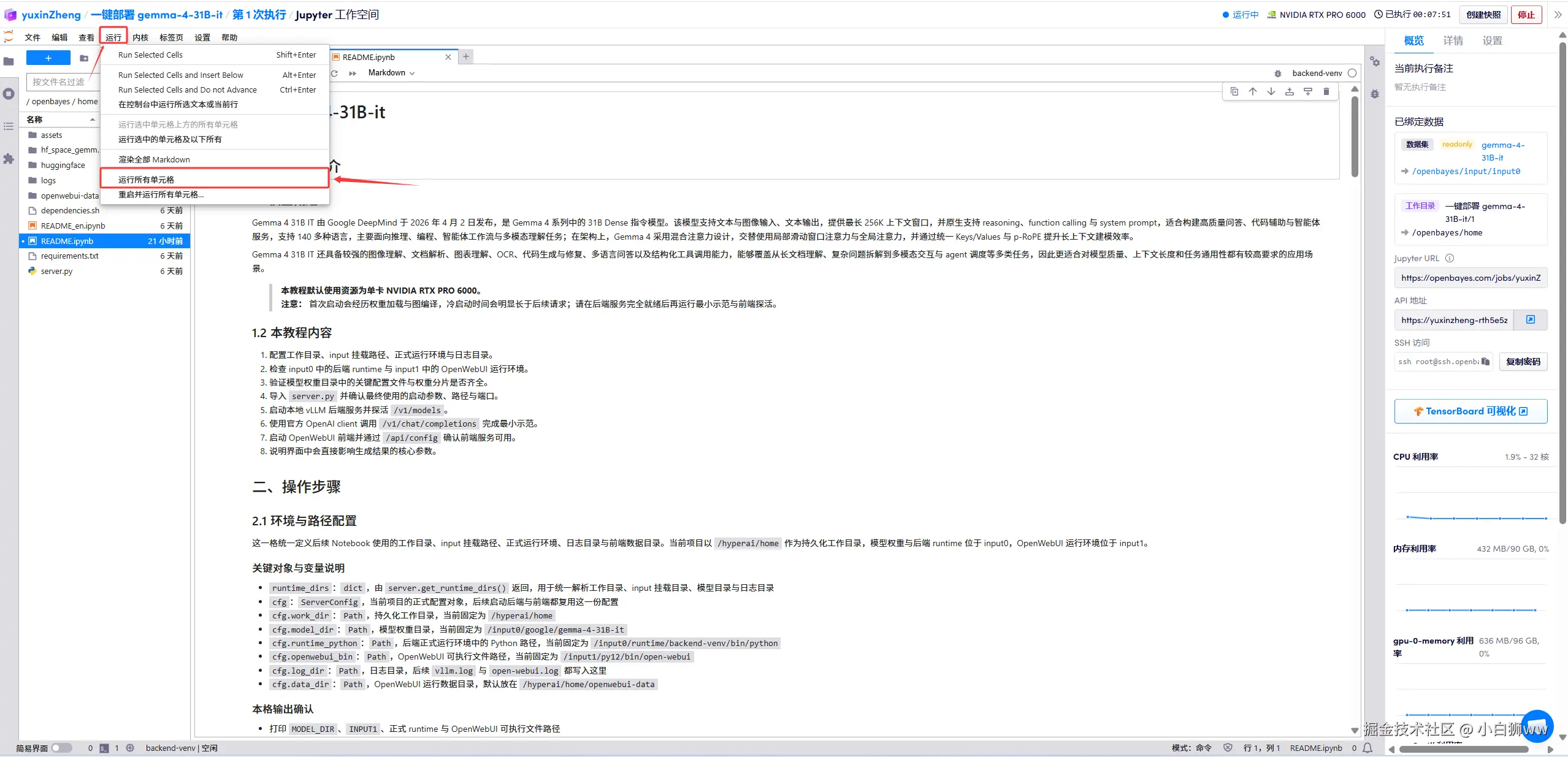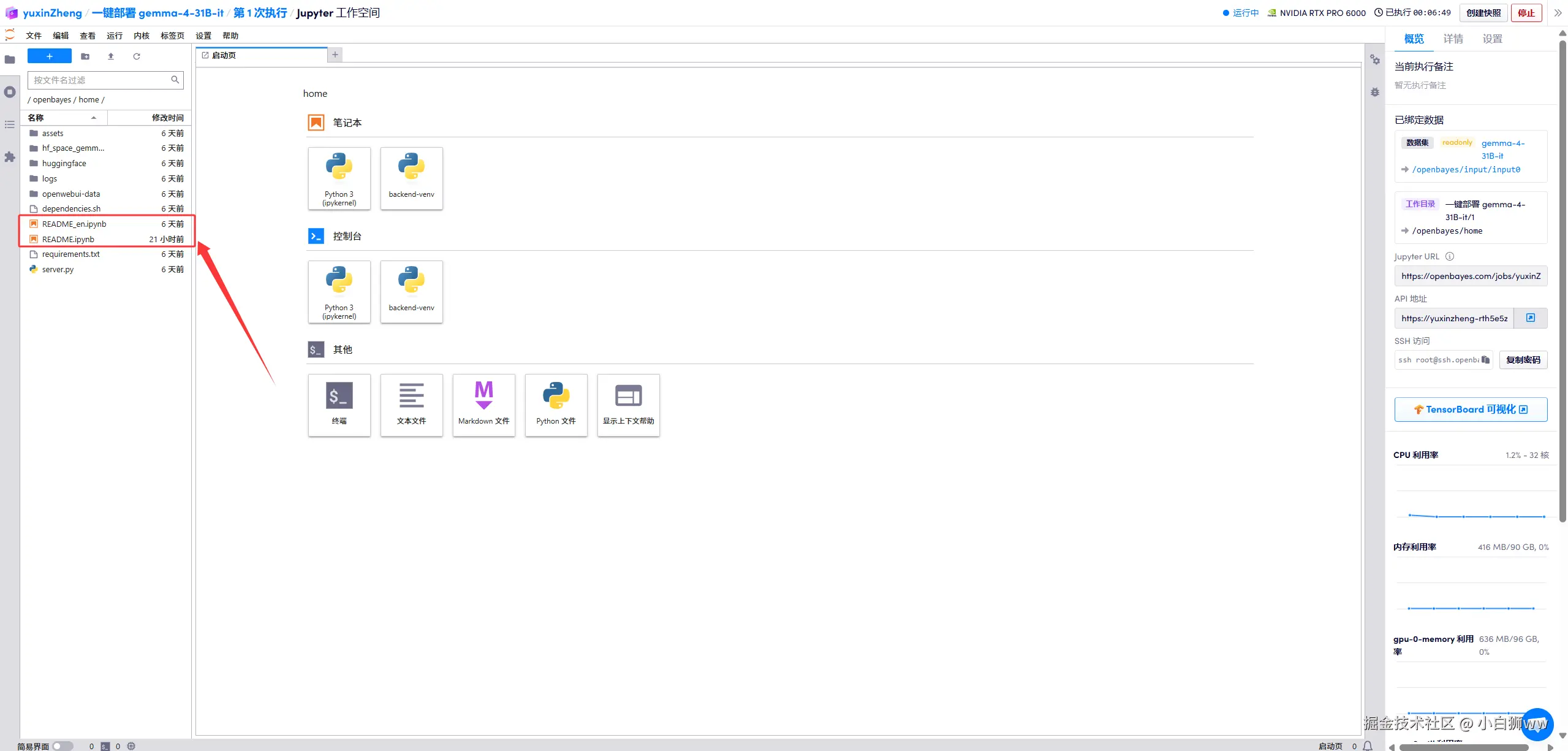 1.页面跳转后,点击左侧 README.ipynb 文件,进入后点击上方「运行」。