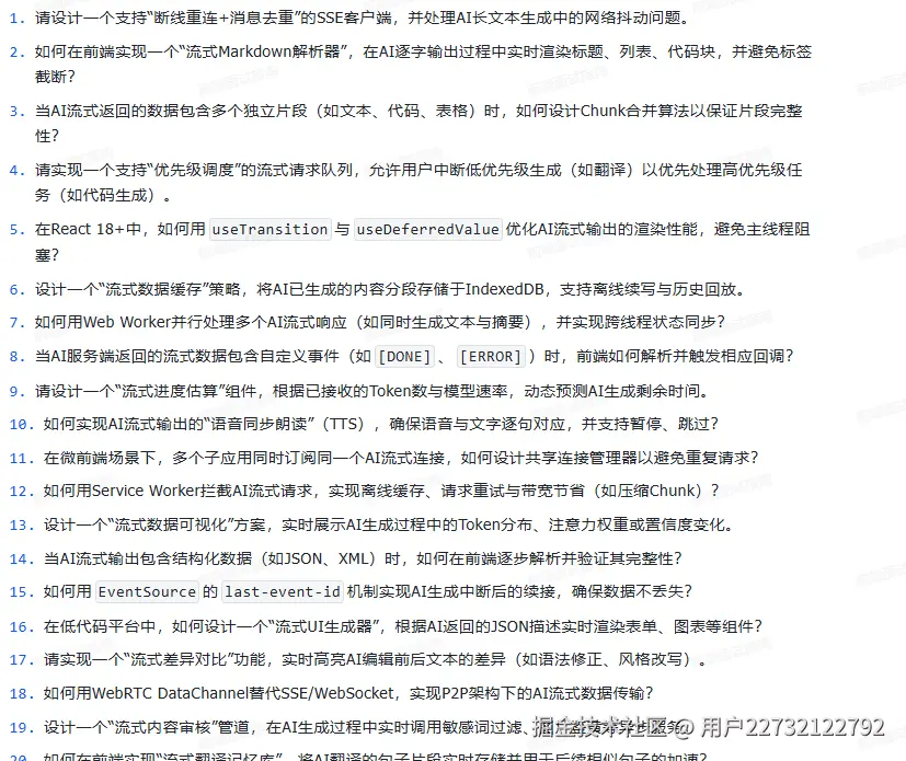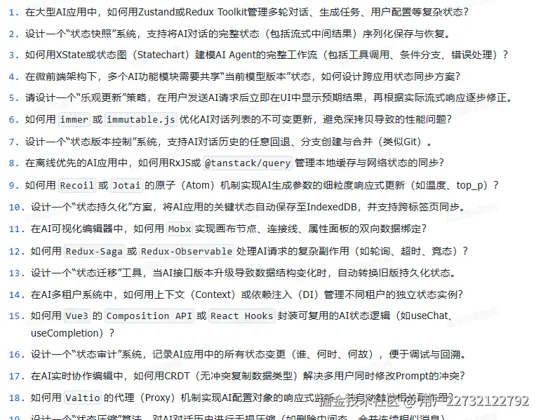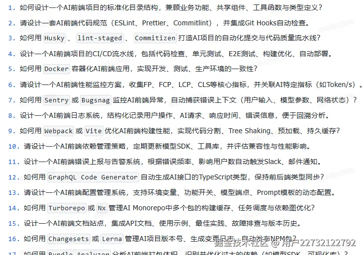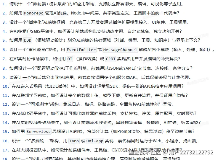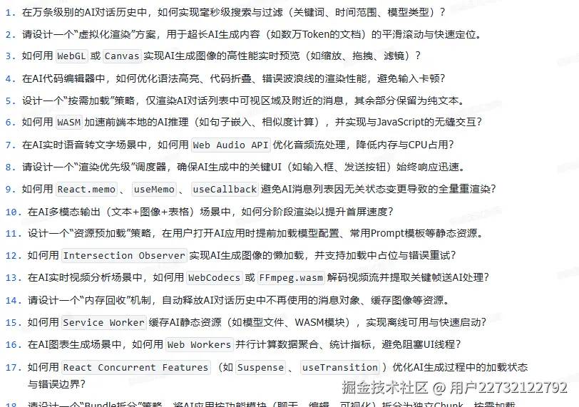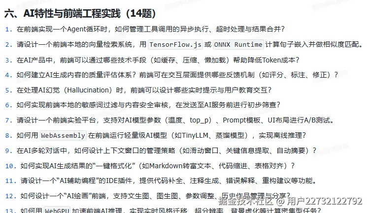 它不是什么“押题宝典”,而是一份血淋淋的时代答卷——里面有“在AI能写80%业务代码的前提下,前端还需要掌握什么”;有“如何用WebLLM在浏览器跑7B模型”;有“怎么设计一个不被Copilot取代的组件库”;更有一针见血的灵魂拷问:“你的不可替代性,用三行代码怎么证明?”
