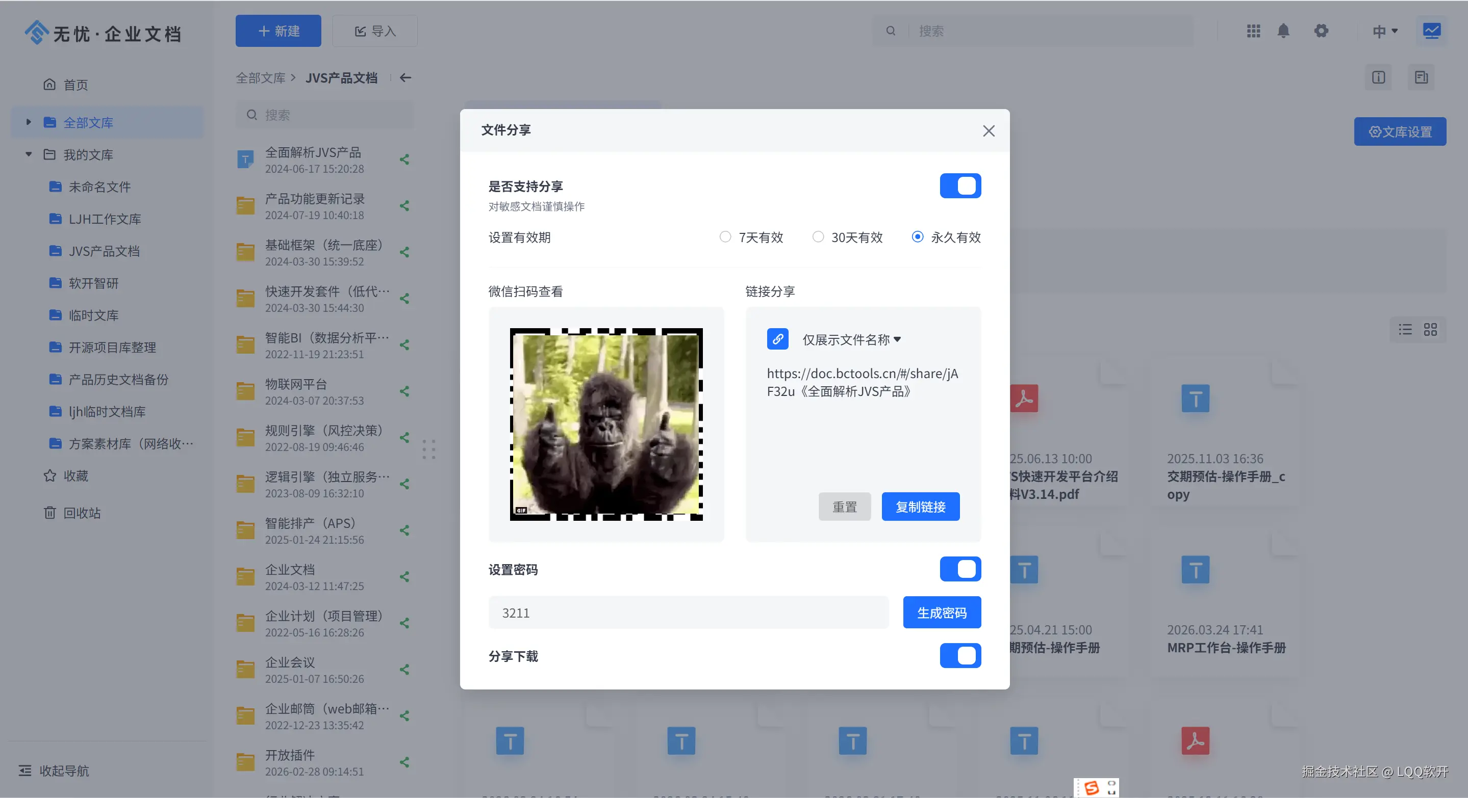 • 支持加密分享、有效期控制、外发权限限制等功能,在实现文件安全共享的同时,有效防范信息泄露风险