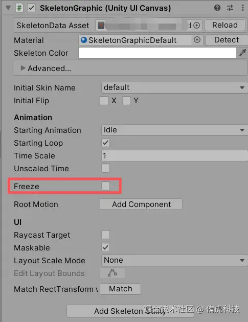 另外了解到画面上方的一些角色也都是Spine做的,但是它们在屏幕外时没有做相关处理,仍然在更新。这种情况可以利用Graphic组件上的Freeze功能,也可以通过代码进行控制,当这个对象在视域体外的时候就把它冻结,这样它就会停止Spine相关逻辑的更新,等到快要回到视域体中时再把Freeze状态解除。