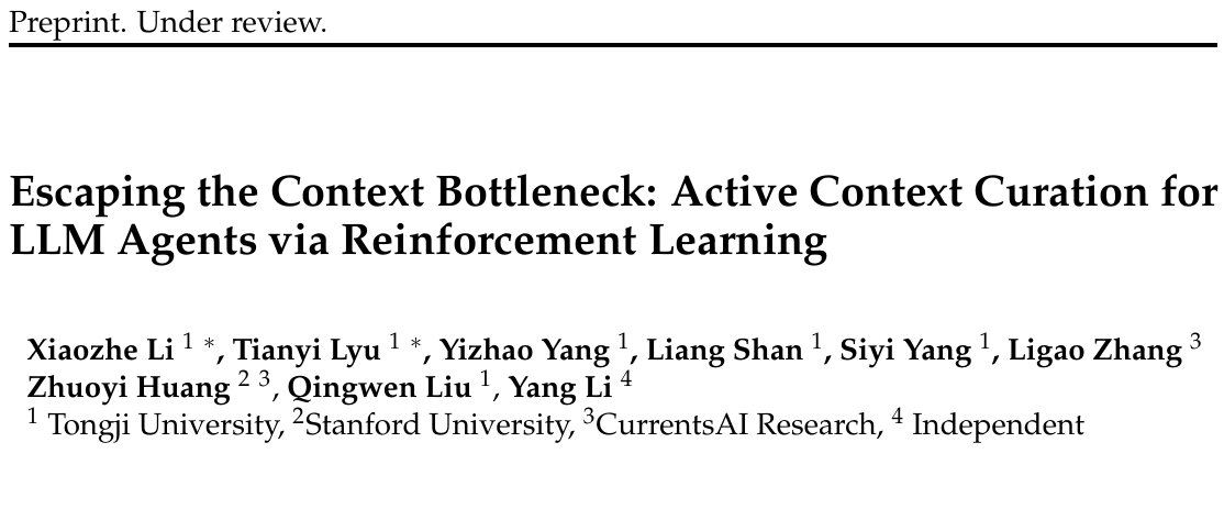 大语言模型(LLM)驱动的 Agent 被寄予厚望,人们期待它能像人类一样在复杂的数字世界中完成多步骤的长期任务。然而,一个严峻的现实是,当任务链条拉长,即使是当前最顶尖的模型,其表现也会急剧下降。问题的根源在于两大顽疾:“上下文瓶颈”(Context Bottleneck)与“中间遗忘”(Lost-in-the-Middle)现象。当 Agent 在网页浏览、信息检索等真实环境中持续互动时,海量的无关信息(即“噪声”)会不断涌入并堆积在模型的记忆中,迅速稀释关键信息的信噪比,最终导致推理链条的断裂和任务的失败。