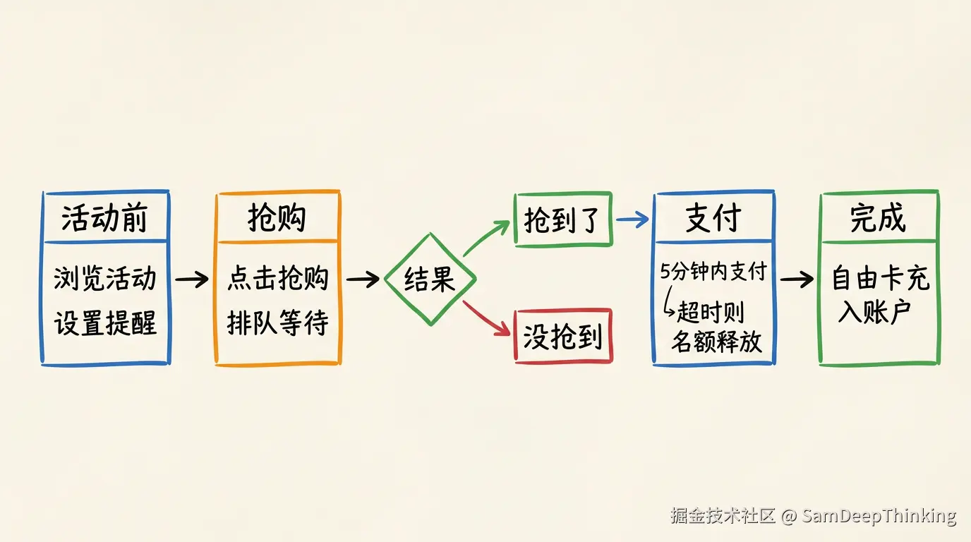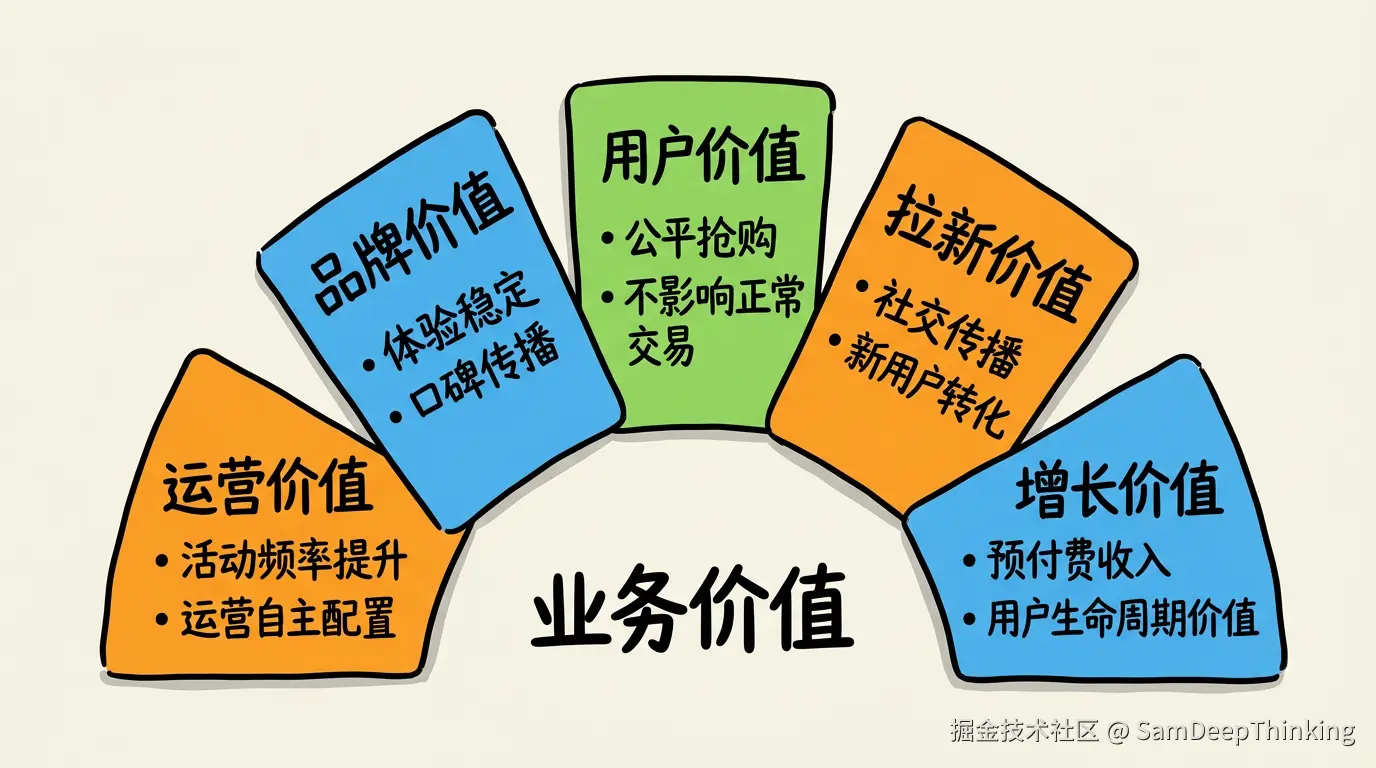 这几个长期指标是判断秒杀系统业务价值的根本依据。单场活动的成交金额只是短期收益,自由卡用户的长期留存和消费才是这件事值不值得持续投入的答案。