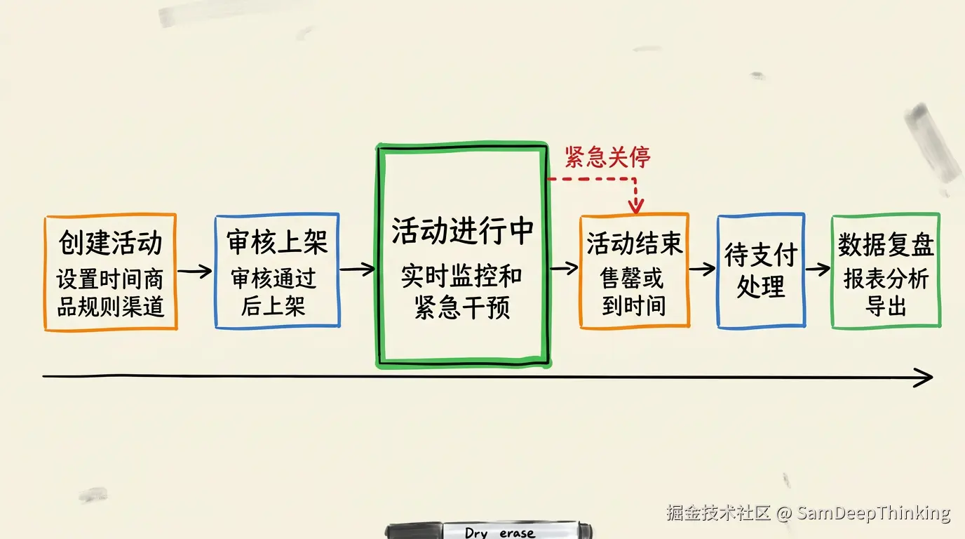 | 紧急关停 | 活动进行中遇到异常情况时,运营人员一键终止活动的操作,执行后所有新请求立即被拦截 |