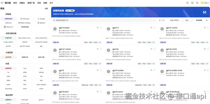 官网订阅制每月 20 美金起步,且无论你是否用完都得付费。而接口通支持按 Token 使用量计费,用多少扣多少,且充值金额永久有效。对于调用频率不稳定的项目来说,成本可节约 50% 以上。