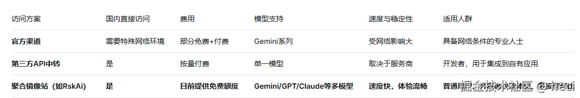 目前国内用户想直接体验Google Gemini的强大能力,最便捷的方式是通过聚合类镜像平台。