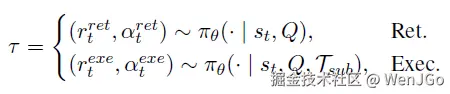 论文把整个 open-world tool-use 过程写成一个轨迹 ,其中既包含检索阶段的推理与动作,也包含执行阶段的推理与动作。