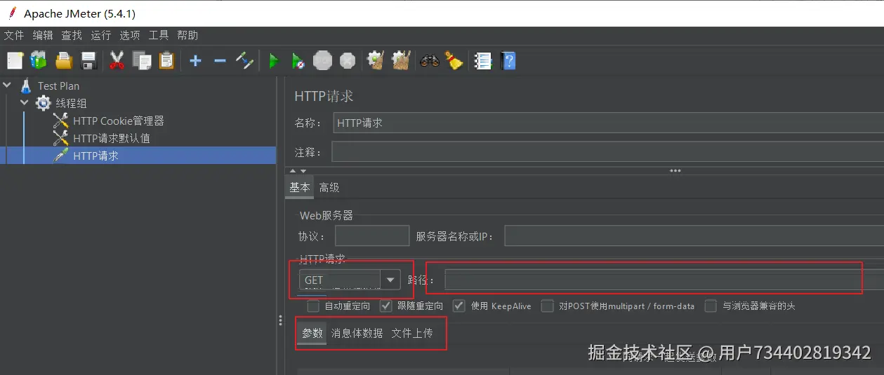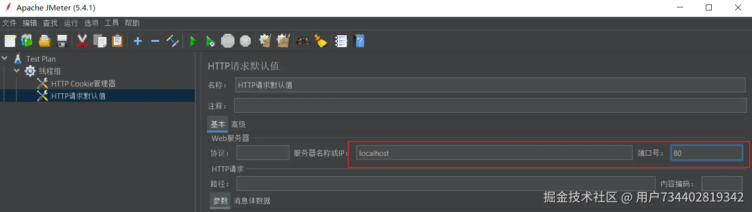元件描述:HTTP请求默认值是为了方便填写后续内容而设置。主要填写[服务器名称或IP]和[端口号],后续的HTTP请求中就不用每次都填写IP地址和端口号了。