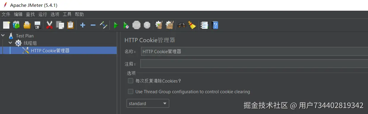 添加方法:右键线程组->添加->配置元件->HTTP Cookie管理器。