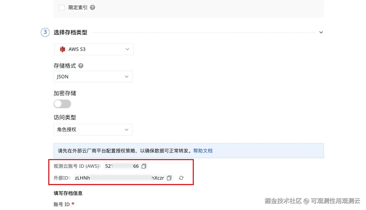 "sts:ExternalId": "<观测云外部ID>"