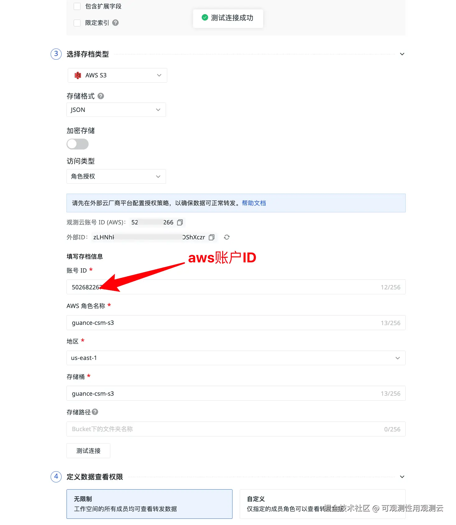 Principal.AWS:观测云账号 IDsts:ExternalId:观测云外部 ID
