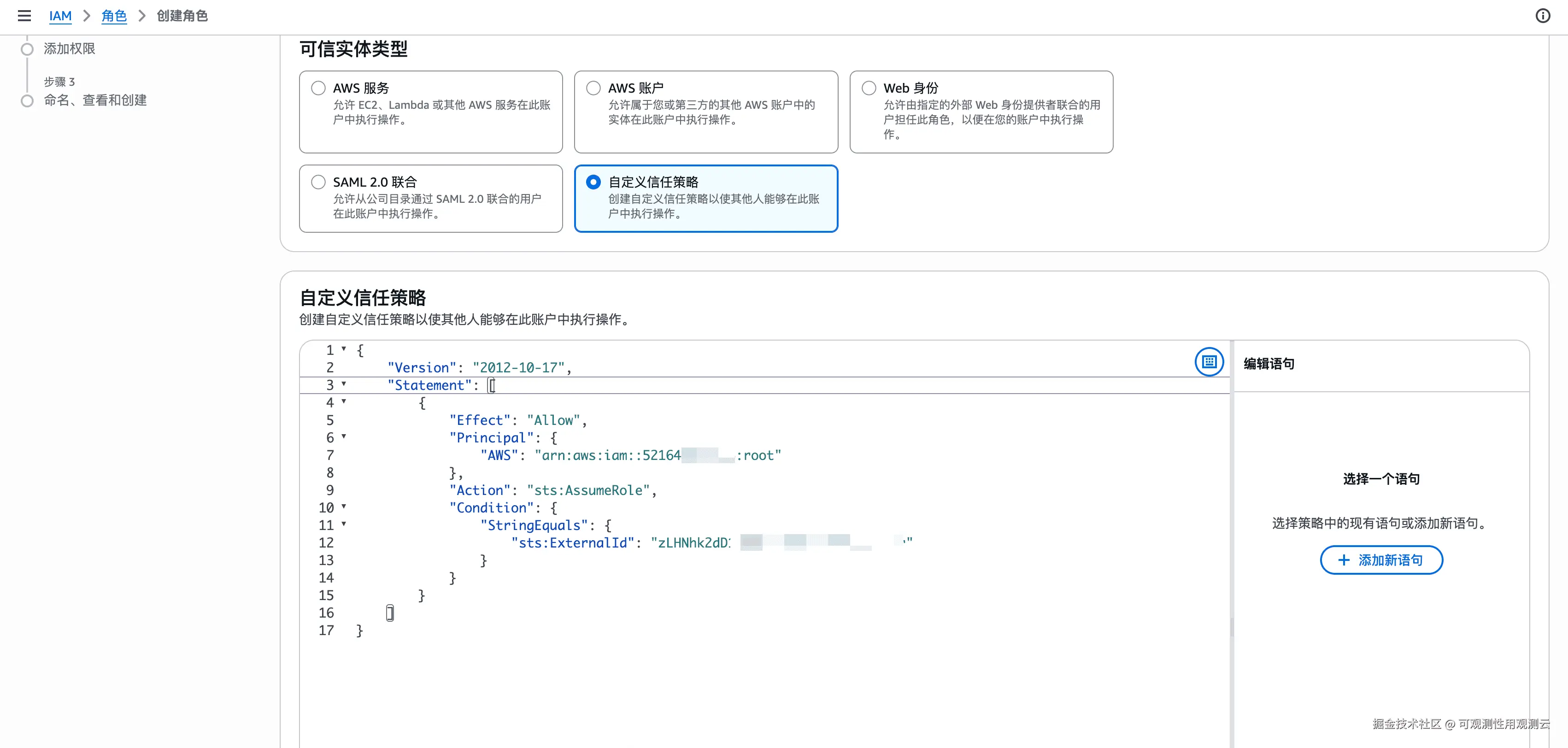 步骤 3:创建 IAM 角色并配置自定义信任策略