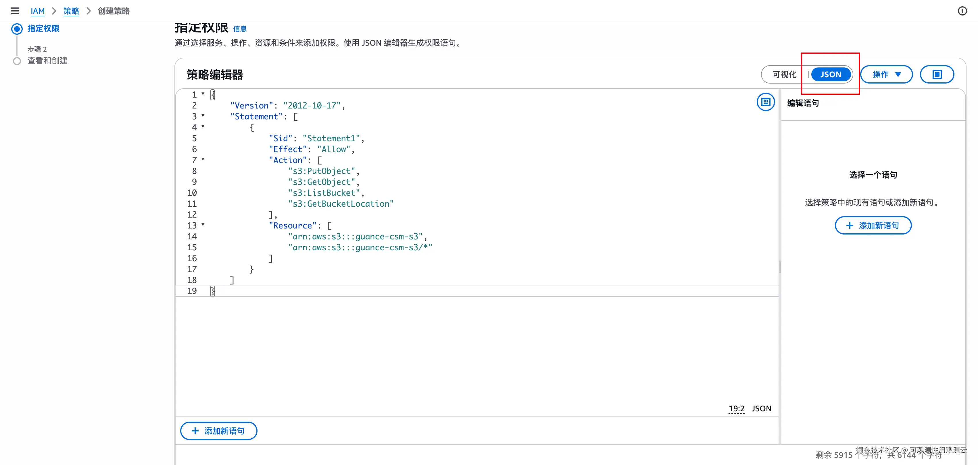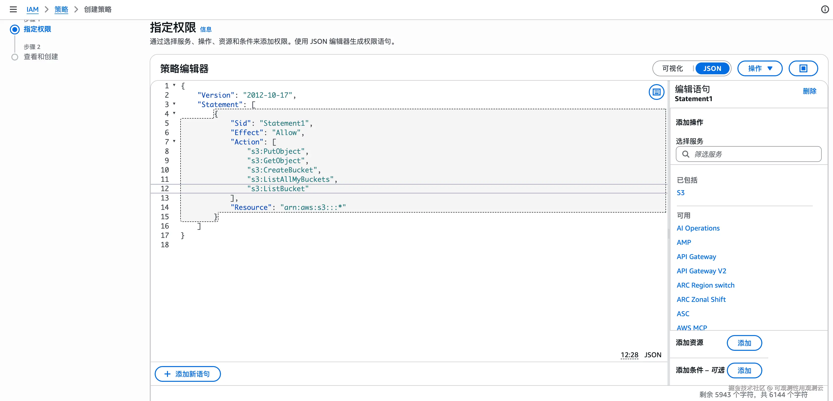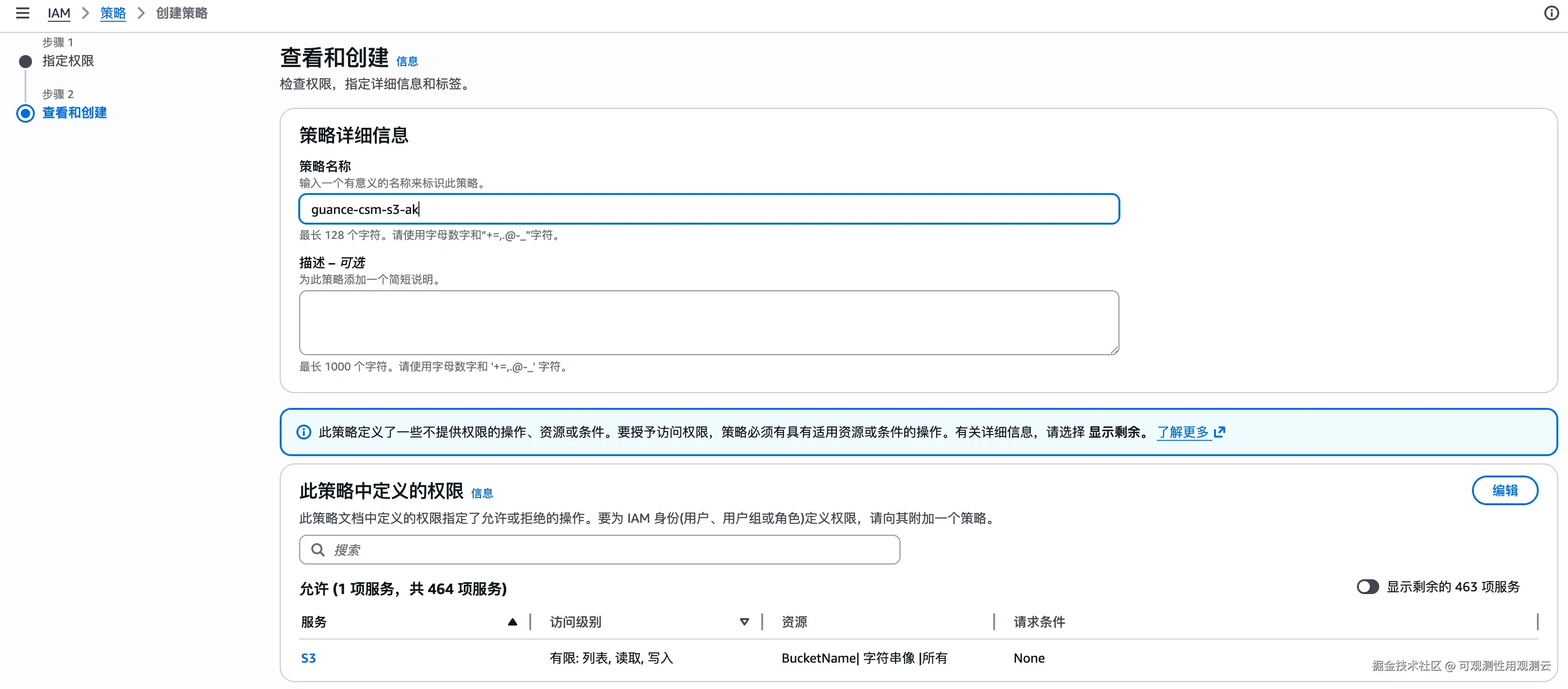 步骤 2:创建 S3 权限策略