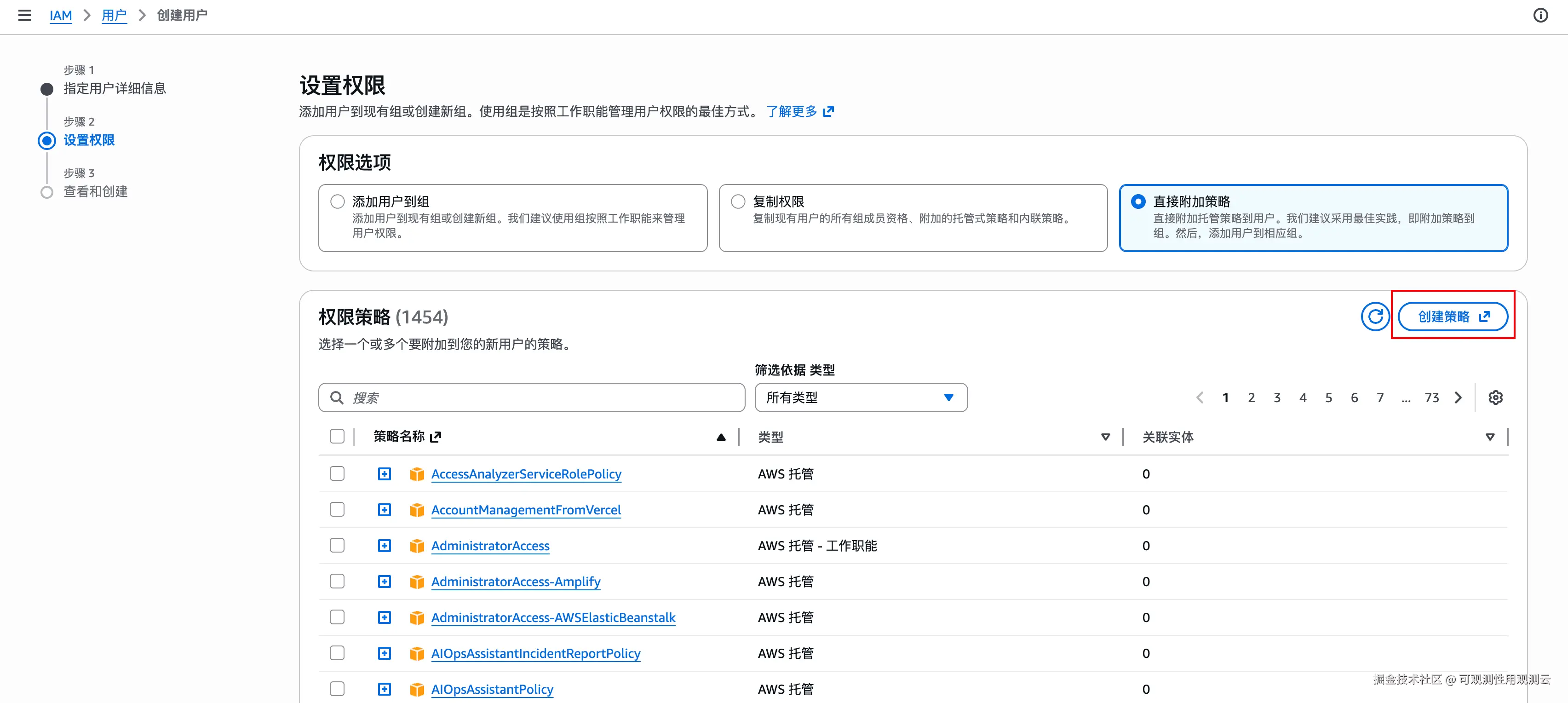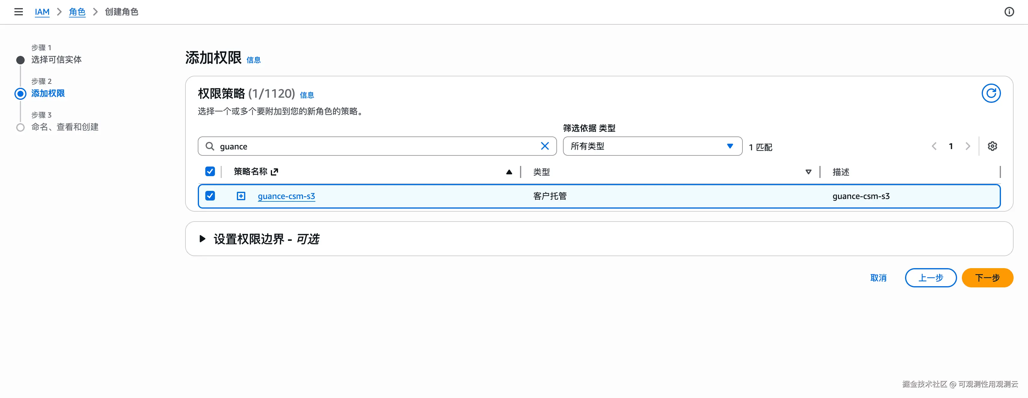 随后将第二步创建的 S3 策略附加到该角色。