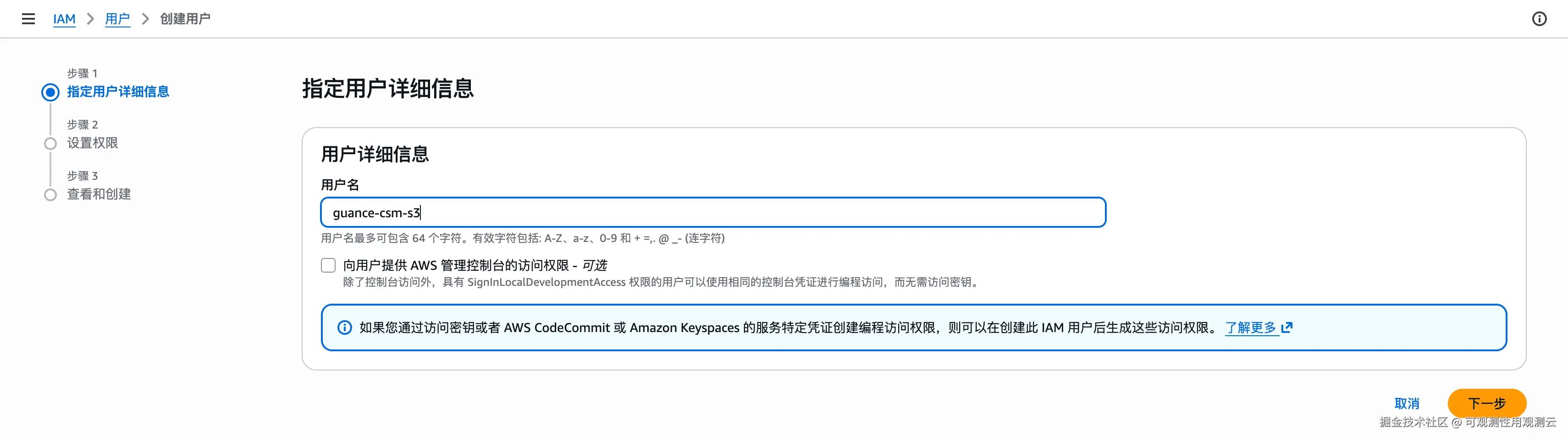 步骤 1:创建 IAM 用户