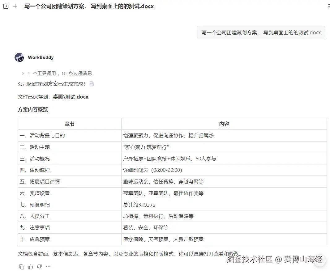 这是 WorkBuddy 和普通 AI 对话工具最大的区别。