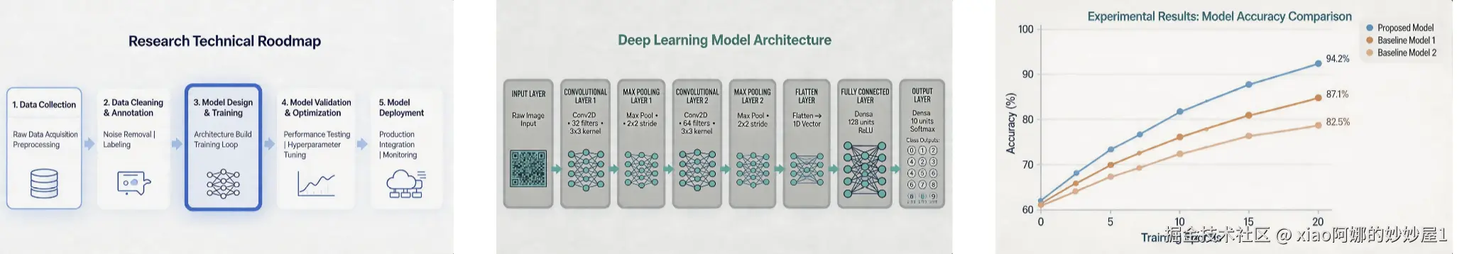 根据上传的3张学术研究图片,生成一条课题汇报展示视频。保持画面风格简洁专业,镜头在技术路线、模型架构、实验结果之间流畅切换,适当加入科技感的光效和数据流动效果。整体风格学术严谨,自带沉稳的背景音乐,适合硕士答辩展示使用。