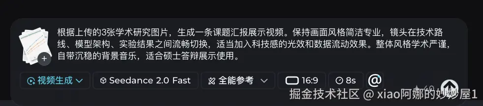 不管你是要做硕士/博士答辩视频、课题组组会汇报、学术会议展示、还是科研项目申报视频,即梦Seedance 2.0都能帮你: