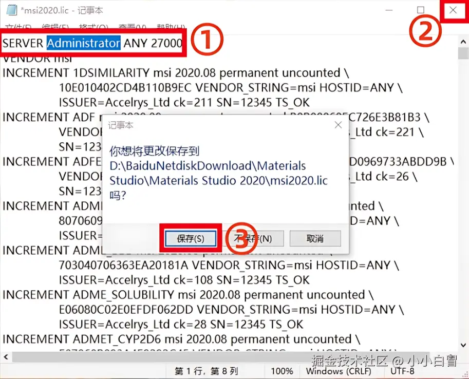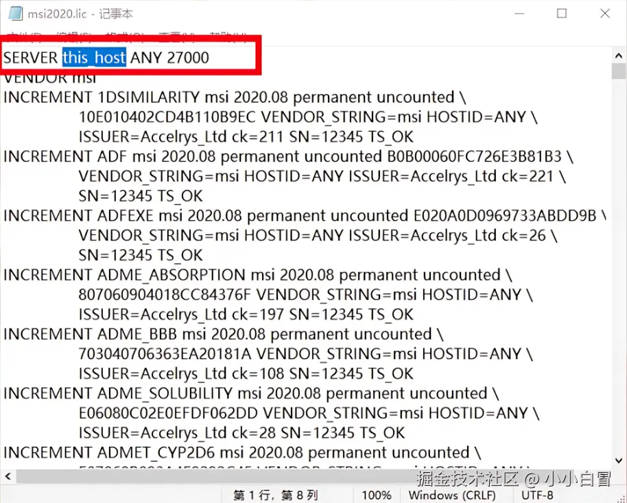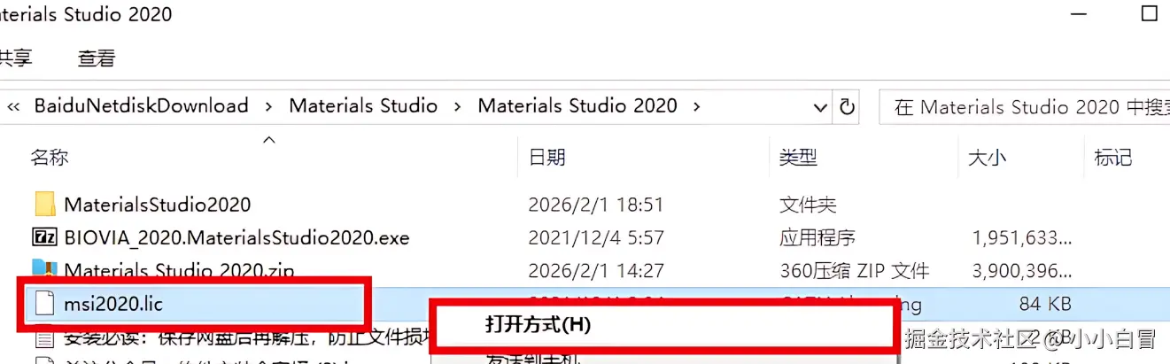 16.回到Materials Studio 2020文件夹,找到【msi2020.lic】文件,右键点击【打开方式】。