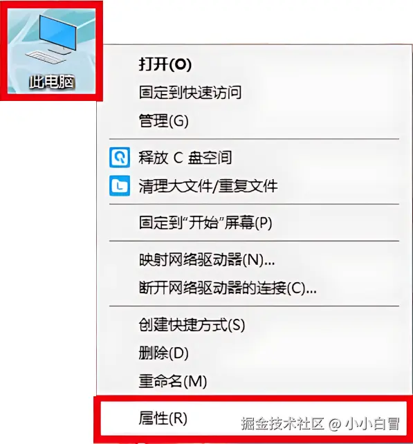 14.回到桌面,右键【此电脑图标】,点击【属性】。