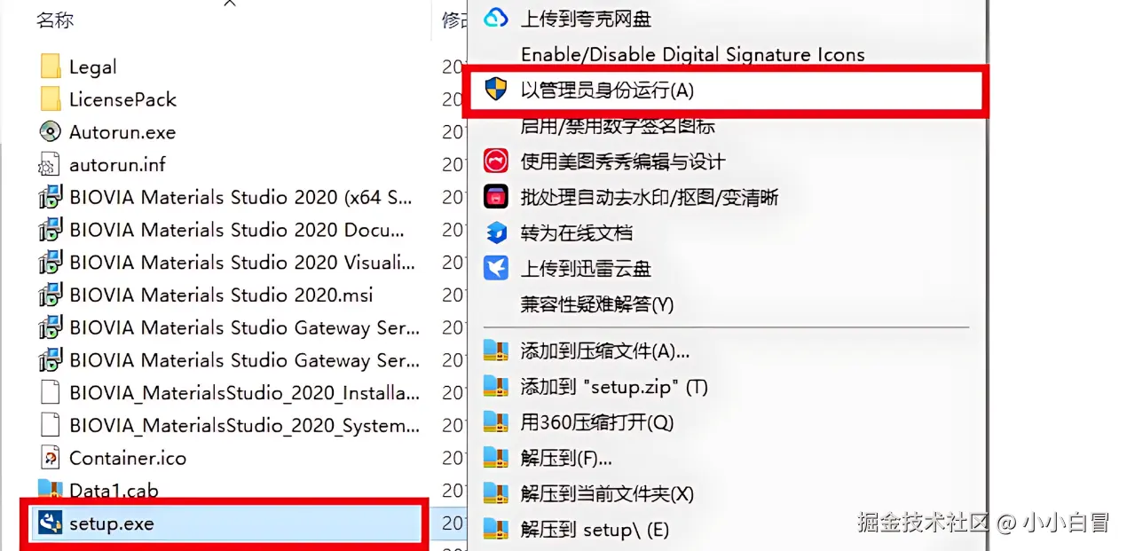 3.找到【setup】应用程序,右键选择【以管理员身份运行】。