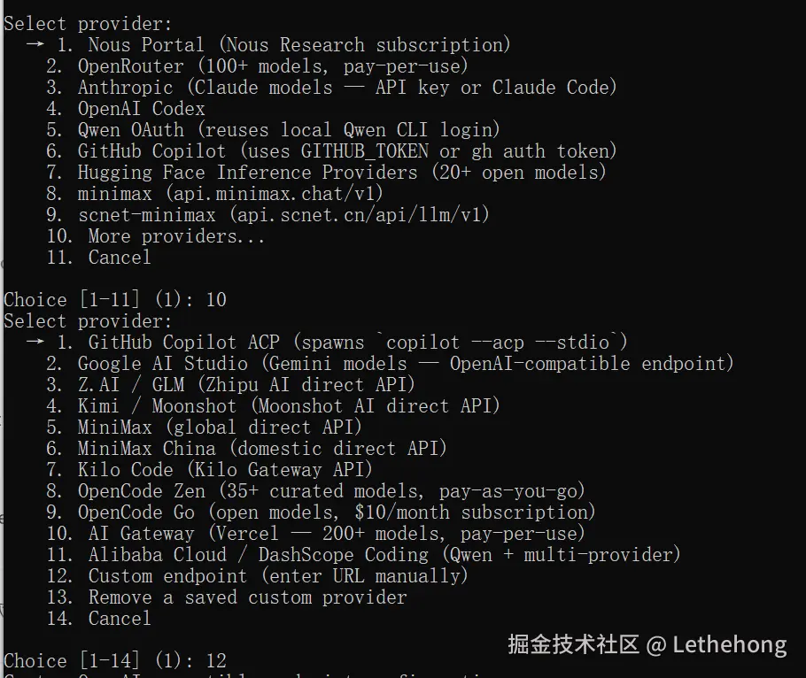 hermes model # 选择 LLM 提供商和模型
