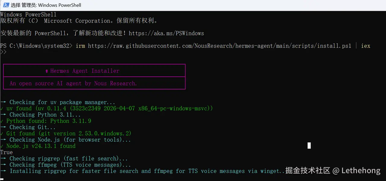 irm https://raw.githubusercontent.com/NousResearch/hermes-agent/main/scripts/install.ps1 | iex