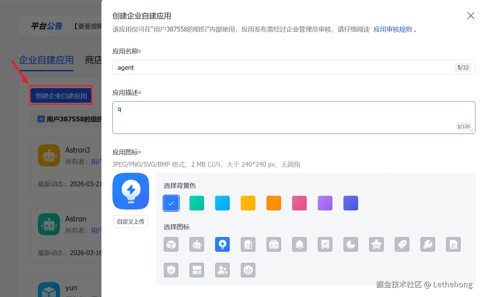 前往飞书开放平台,创建一个企业自建应用(机器人类型)。