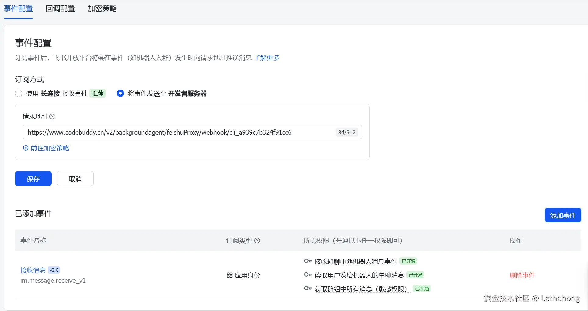 进入「事件与回调」:选择事件配置