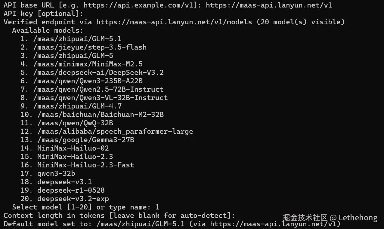 一个卓越的 Agent 需要一颗敏锐的“大脑”。Hermes Agent 完美兼容 OpenAI 格式的 API,这使得我们可以极其顺滑地接入蓝耘(Lanyun)元生代 MaaS 平台,以极具性价比的 GPU 算力驱动其思考。