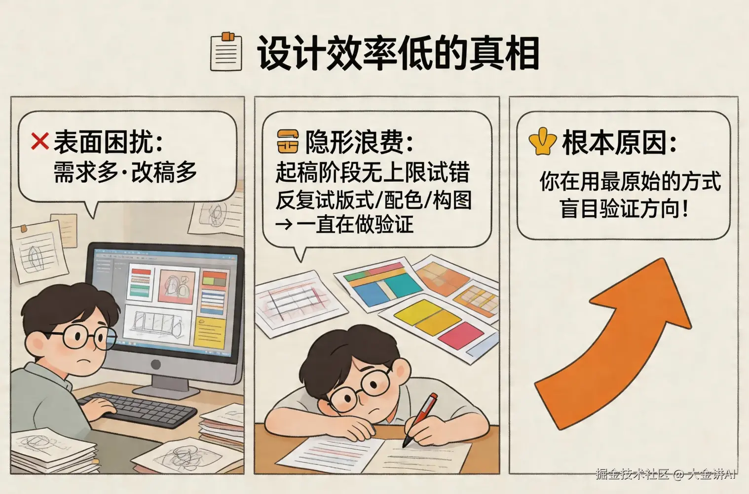 所以设计慢的根本原因,不是你不会做,而是:你每次都在用最原始的方式验证方向。
