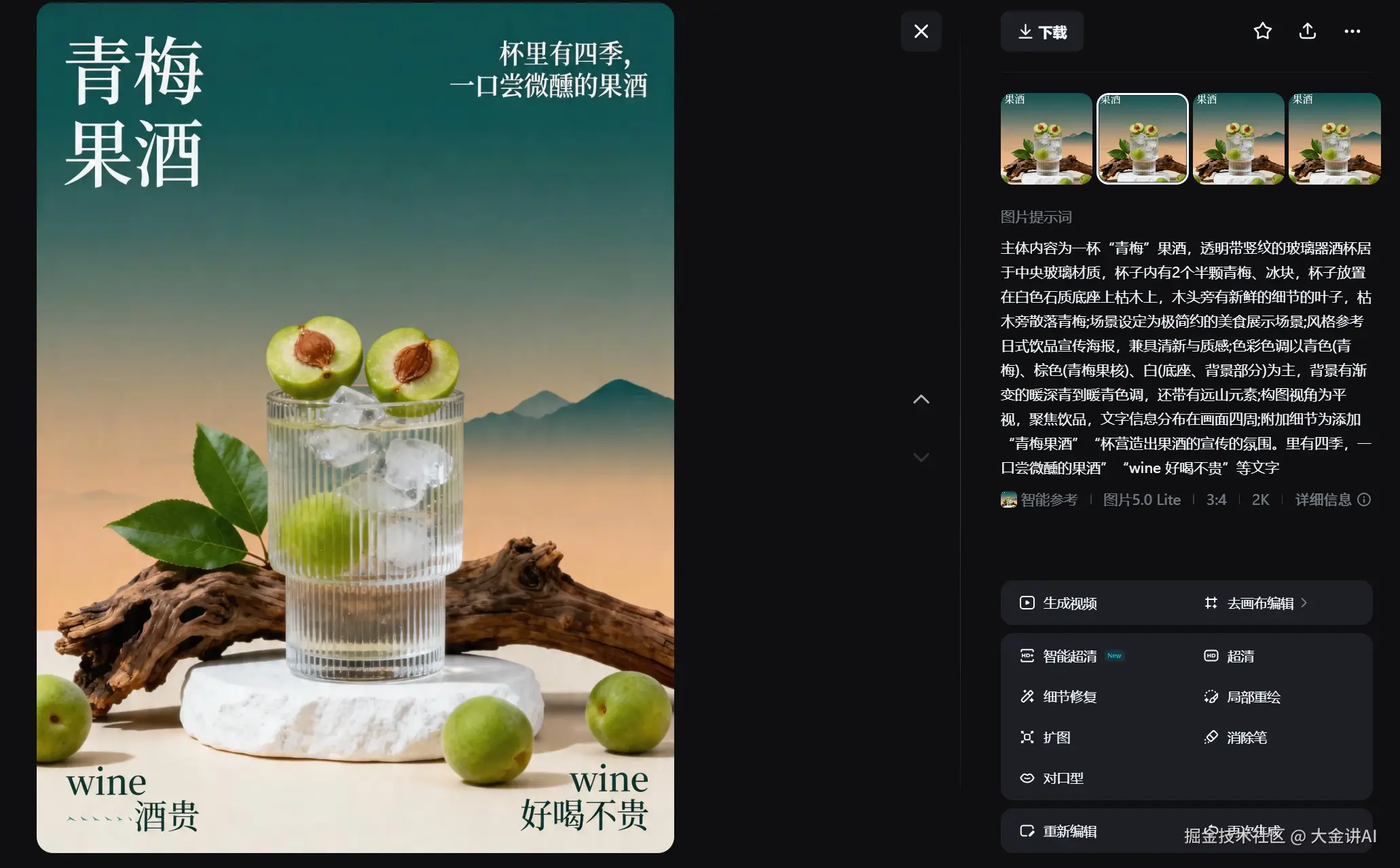 大家好,我是大金。现在我们团队做设计,第一步已经不是打开PS,而是直接用即梦Seedream5.0Lite生成初稿,这一步已经稳定替代了80%的起稿工作,而且输出质量是可以直接进项目流程的。