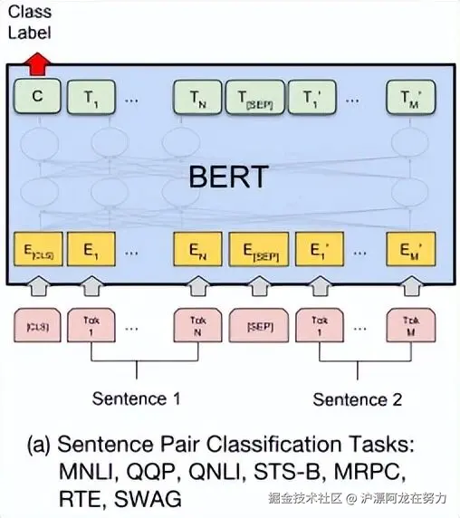 (a) 句子对分类任务(如蕴含判断、语义相似度)