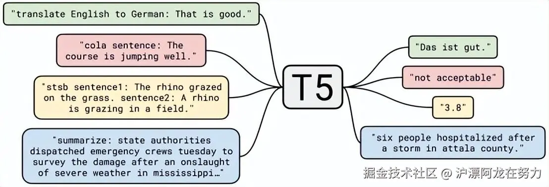 核心思想:统一框架,将所有任务转化为“文本到文本”问题。