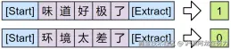首先,将每条评论转为 token 序列,并添加特殊标记 [Start] 与 [Extract],形成模型标准输入格式: