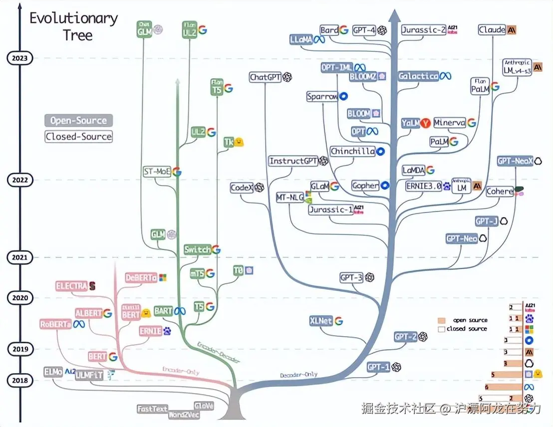 下图清晰展示了2018年至2023年间各大模型的发展脉络: