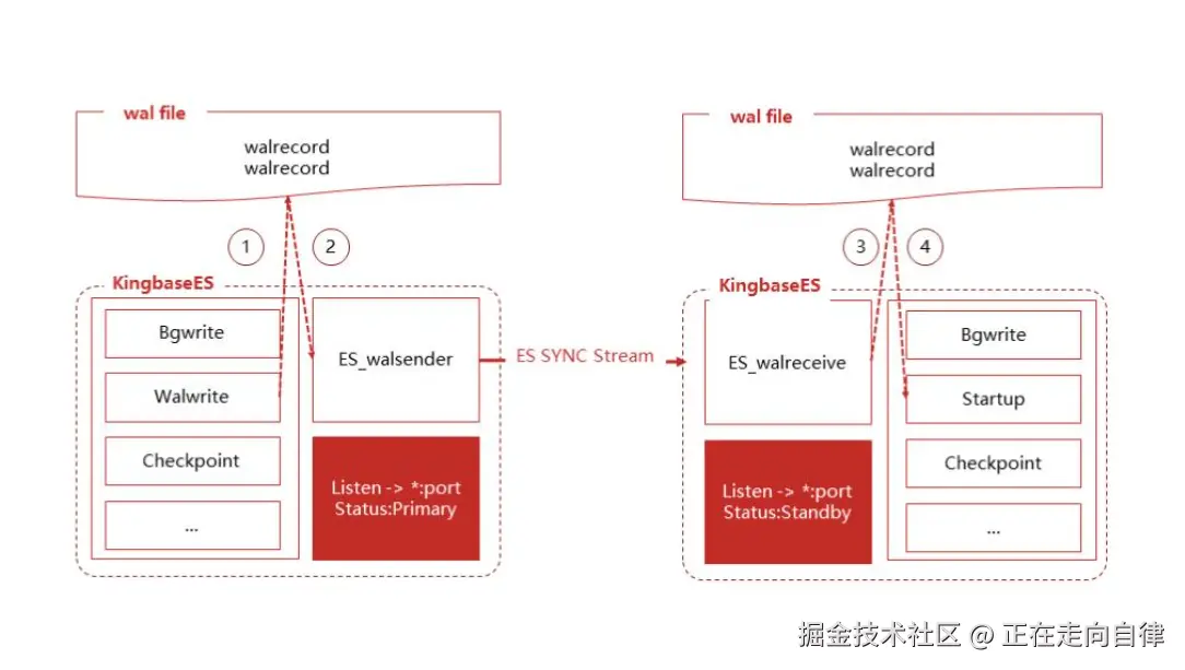 主节点在事务提交时,首先将WAL日志写入本地持久存储,然后通过TCP连接将日志流式传输到备节点。备节点接收日志后,按照主节点完全相同的顺序重做这些日志,从而保证数据的一致性状态。这种机制确保了即使主节点发生灾难性故障,备节点的数据也不会丢失。