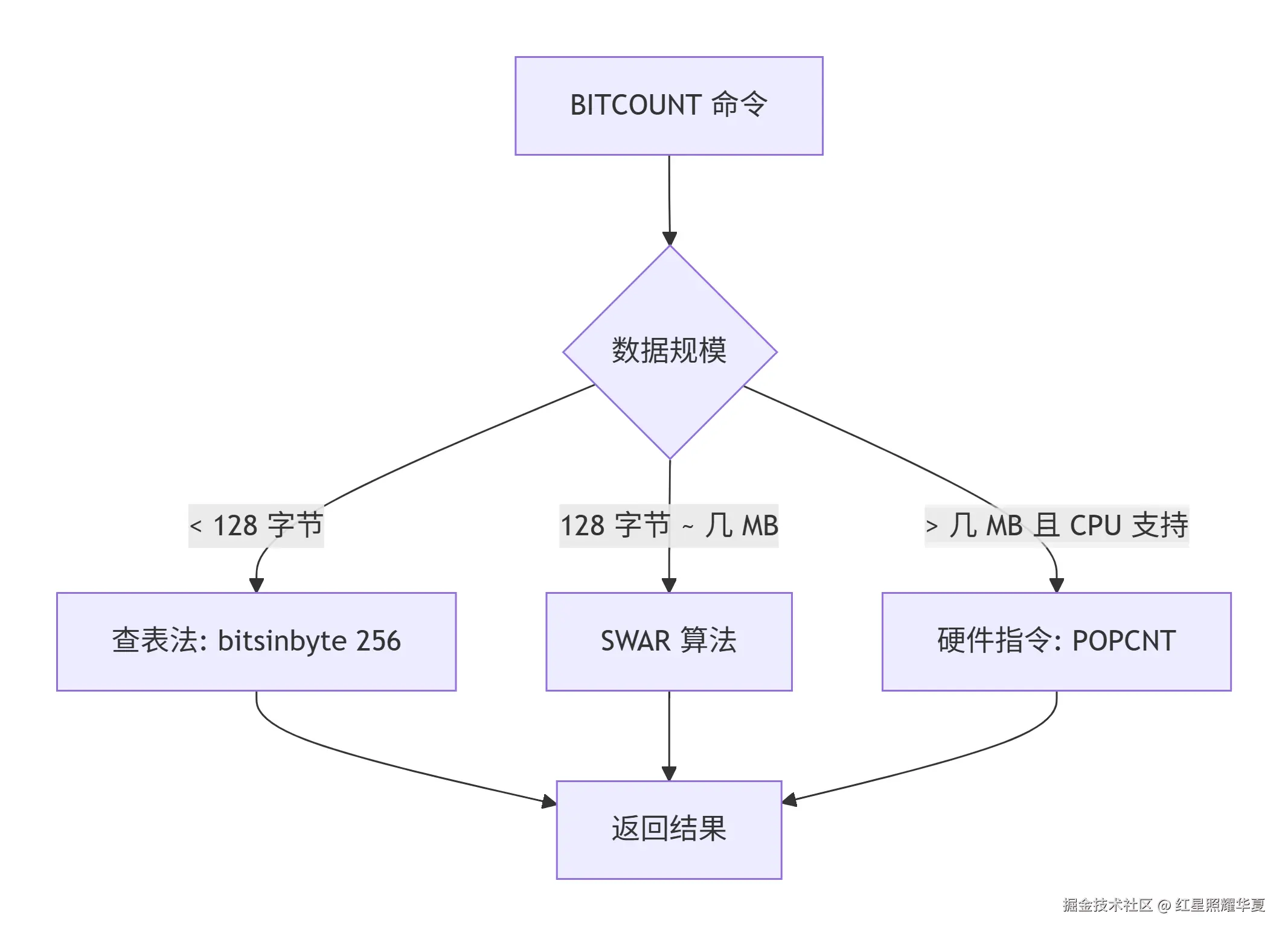 这个自适应策略,让 BITCOUNT 在任何规模下都能保持高性能。