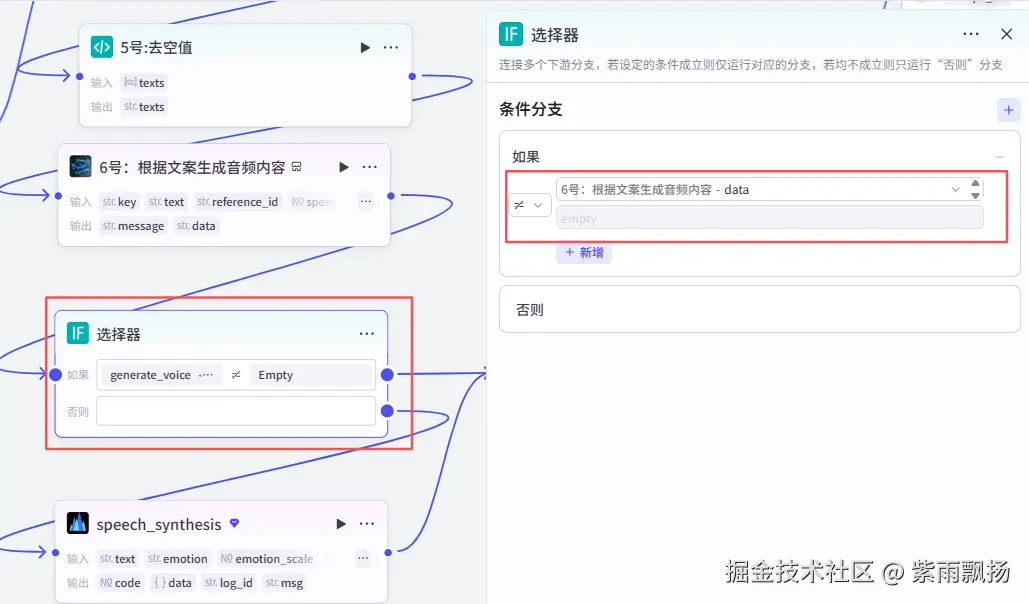该节点的作用就是判断是否生成语音