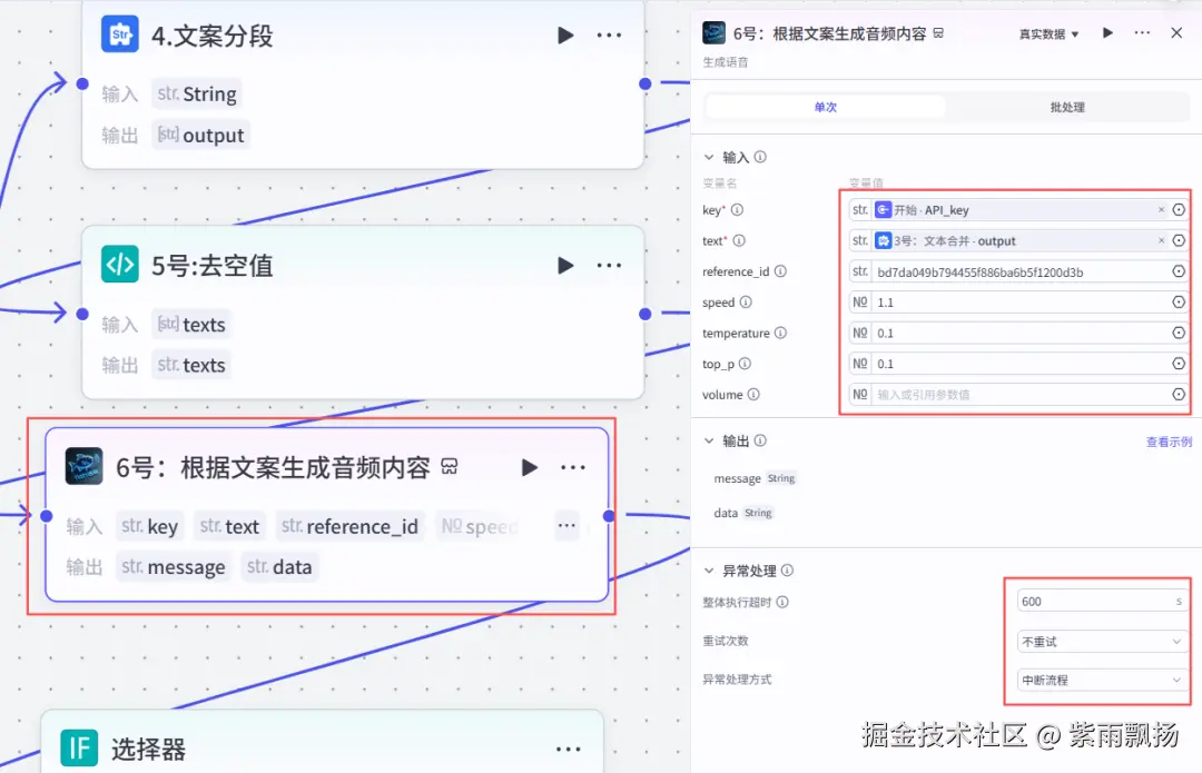 该节点的作用就是将上面的文案进行语音朗读