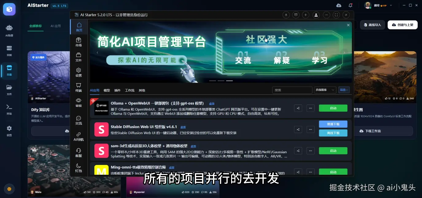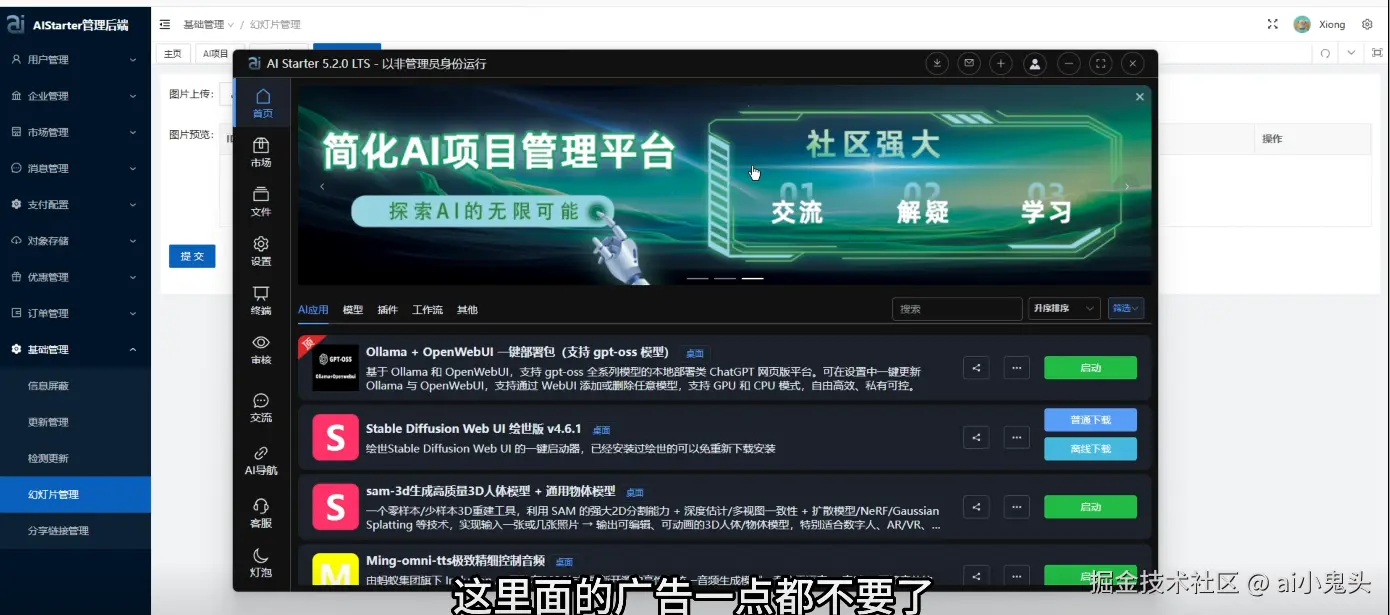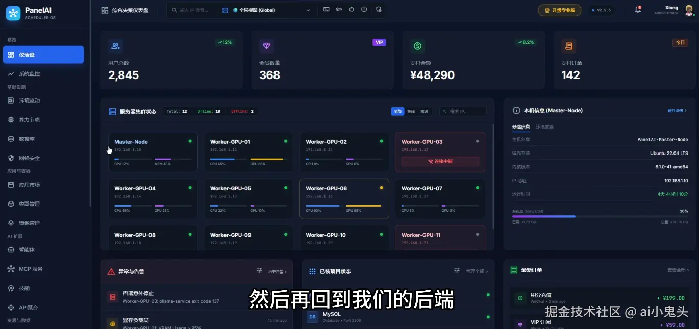 目前PanelAI后端已就绪,团队同步推进后台开发;AIStarter前端则由另一个团队并行攻坚,所有项目多线并进。这种并行开发模式本身就是一次高效实践。购买PanelAI系统的用户可自行设置运营价格,把闲置服务器转化为算力工具;而平台版则以免费为主,鼓励社区共同维护编辑。
